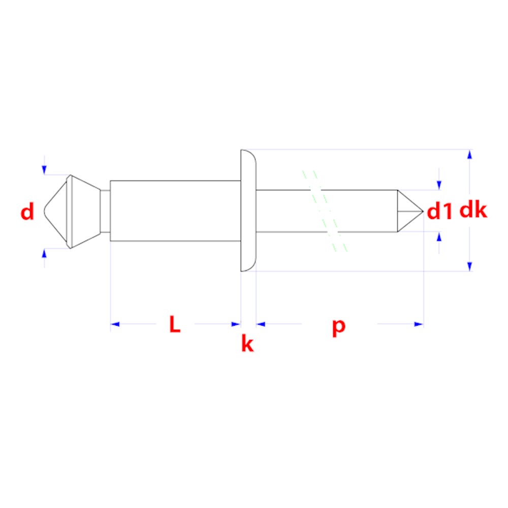 Contacteer onsPGB-FASTENERS Artikelnummer: BKNSR4-18-8AS500 SPREIDRIVET 7337A BK 4.00X18 AL/ST