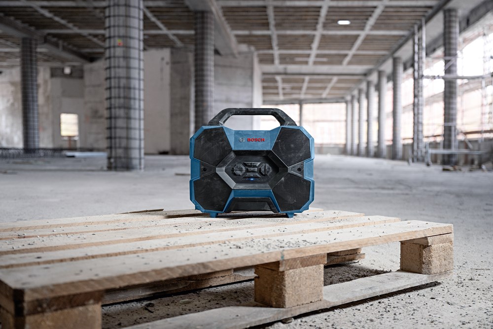 Vul de werk- of bouwplaats zonder gedoe met favoriete muziek. Onze bouwspeaker GPB 18V-6 C Professional levert uitstekend kristalhelder geluid via Bluetooth®, USB of Multi-Speaker Sound. Met Multi-Speaker Sound kunnen muziekstreams op meerdere compatibele apparaten via Bluetooth® worden gedeeld en aangesloten. Met de hoge volume-instelling is de muziek te horen hoe veel lawaai er ook op de bouwplaats is. Bovendien kan deze intuïtieve speaker eenvoudig worden ingesteld en gebruikt. En dankzij de leds is het oplaadniveau van de accu altijd bekend. De GPB 18V-6 C Professional heeft een USB-poort voor het opladen van smartphones. Deze heeft ook een eenvoudig verwijderingsmechanisme voor 18V-accu's: trek eenvoudig aan de hendel en de accu wordt ontgrendeld en uitgeworpen – de rode knop hoeft niet te worden ingedrukt en er hoeft niet te worden gemorreld om de accu uit het accuvak te krijgen. Er kan een beschermend frame worden aangebracht om de robuustheid van de Bluetooth® speaker te vergroten. De bouwspeaker kan ook achteraf worden aangepast om deze volledig compatibel te maken met ons L-BOXX Mobility systeem: breng de L-BOXX-adapters eenvoudig op de GPB 18V-6 C Professional aan en loop ermee weg. Het beschermend frame en de L-BOXX-adapters zijn allebei verkrijgbaar als vervangingsonderdelen.