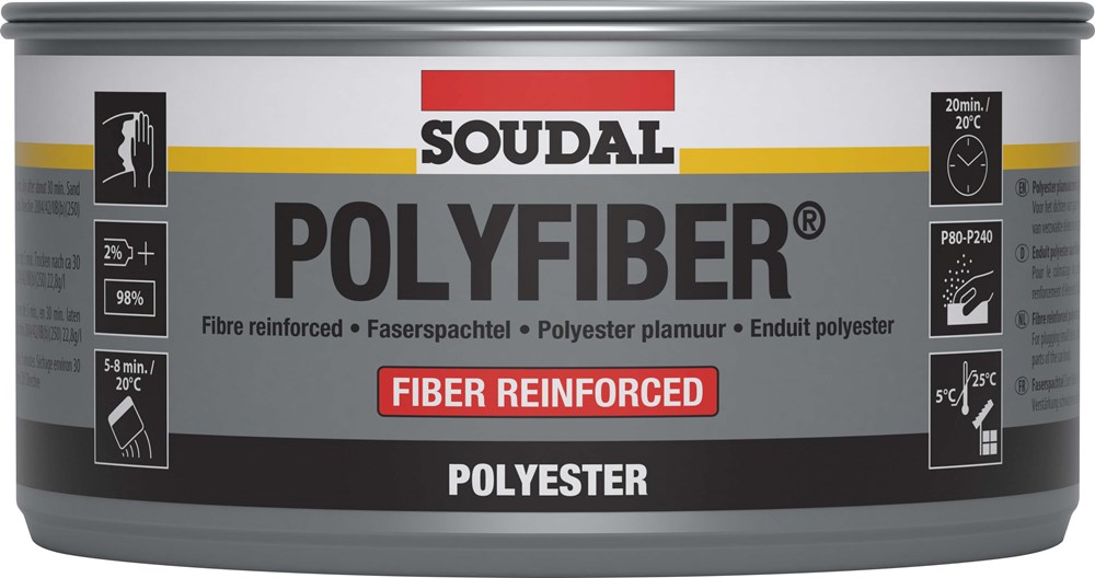 Polyesterplamuur versterkt met glasvezels. Uitermate geschikt voor het opvullen van gaten en scheuren in metaal, hout en polyester. Versterkt eveneens verzwakte delen.