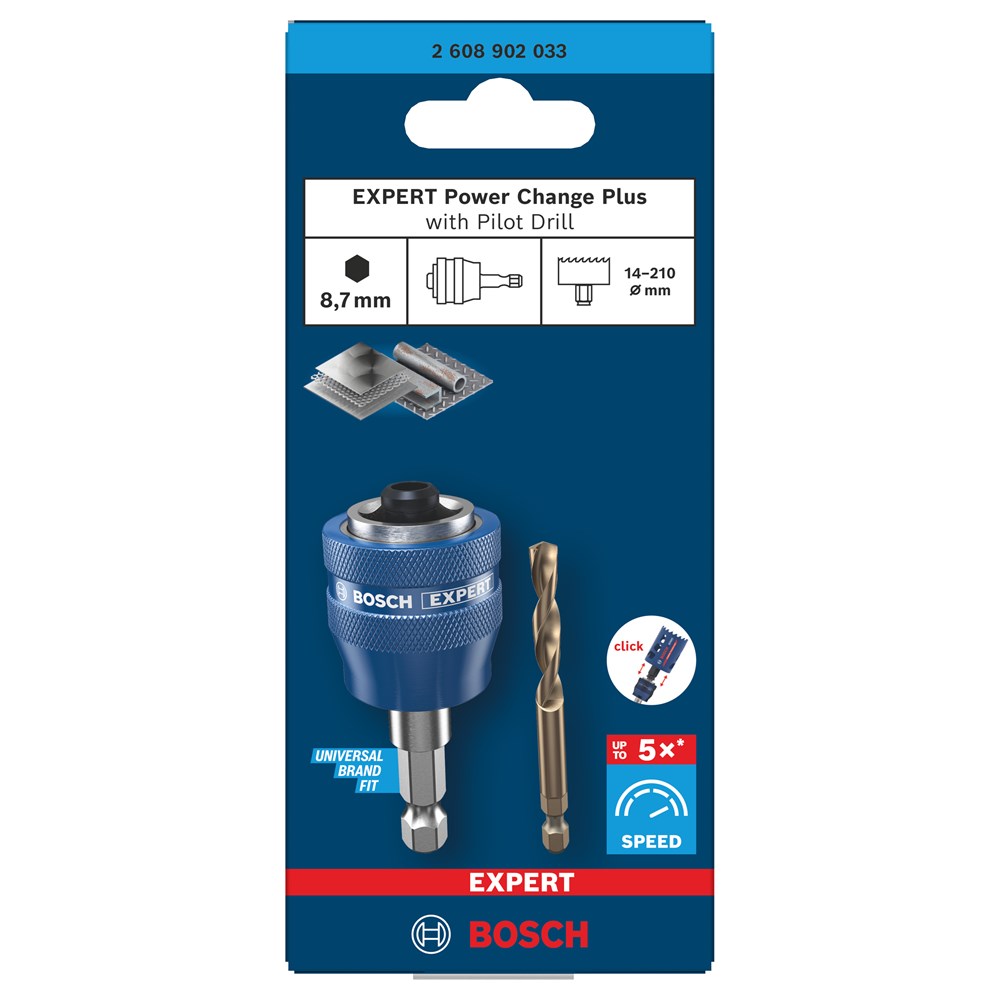 Het Bosch EXPERT Power Change Plus-gatzaagsysteem is ontworpen om gebruikers van gatzagen de beste verbinding met maximale efficiëntie te bieden. Het bespaart je tijd en helpt je de zwaarste taken met gemak uit te voeren.