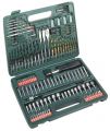Contacteer ons112-delige bitset bestaande uit: PH 0, 1, 2, 3 / PZ 1, 2, 3 / T 10, 15, 20, 25, 27, 30, 40 / Zeskant 2, 3, 4, 5, 6, 7 / Gleuf 3, 4, 5, 6, 7, 8 / Robertson 1, 2, 3 / PZ 1, 3, L = 50 mm / 2 x PZ 2, L = 50 mm / T 10, 15, 20, L = 50 mm / Zeskant 2, 3, 4, 5, 6, L = 50 mm / Gleuf 6, 8, 10, 12, L = 50 mm /Robertson 1, 2, 3, L = 50 mm / Magnetische bithouder met snelwisselsysteem / 1/4" Flexibele schacht L = 280 mm / 1/4" Bithouder schroevendraaier / 4 x Schroefhouder /1/4" Verzinkboor /Metaal: 1.5, 2, 2.5, 3, 3.2, 3.5, 4, 4.5, 4.8, 5, 5.5 /6, 6.5 mm / Hout: 3, 3.2, 3.5, 4, 4.5, 4.8, 5, 5.5, 6, 6.5, 7 7.5, 8 mm / Steen: 3, 4, 5, 6, 8, 10 mm / Speedboren : 10, 12, 20 mm / 1/4" Dopsleutel 5, 6, 7, 8, 9, 10, 11, 12, 13 mm, 3/16", 7/32", 1/4", 9/32", 5/16", 11/32", 3/8", 7/16", 1/2"