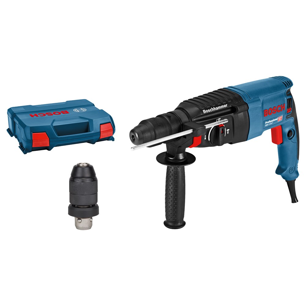 De GBH 2-26 F Professional met snelwisselboorhouder is de allrounder in de Bosch SDS plus boorhamerklasse met snoer en is de perfecte machine voor dagelijks gebruik. De sterke motor levert een slagenergie van 2,7 J en zorgt zo voor snel boren en een hoge afnamecapaciteit bij het beitelen. Betrouwbaar en robuust zorgen de hoogwaardige componenten van de boorhamer ook voor een lange levensduur. Met de optionele beitelfunctie en snelwisselboorhouder is een gebruik voor veel toepassingen mogelijk.