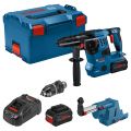 Deze boorhamer is ideaal voor hameren in beton, steen en metselwerk. Deze is compatibel met alle accu's en opladers in het Bosch Professional 18V System. Voor een stofvrije en veiligere werkomgeving kan de stofafzuiging GDE 18V-16 Professional eenvoudig worden bevestigd.