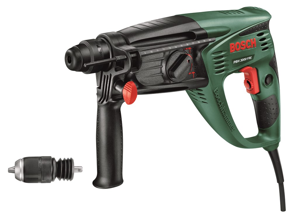 De boorhamer PBH 3000 FRE van Bosch verenigt kracht met comfort en klaart moeiteloos zware hamer-, boor- en beitelklussen. Werk efficiënt!