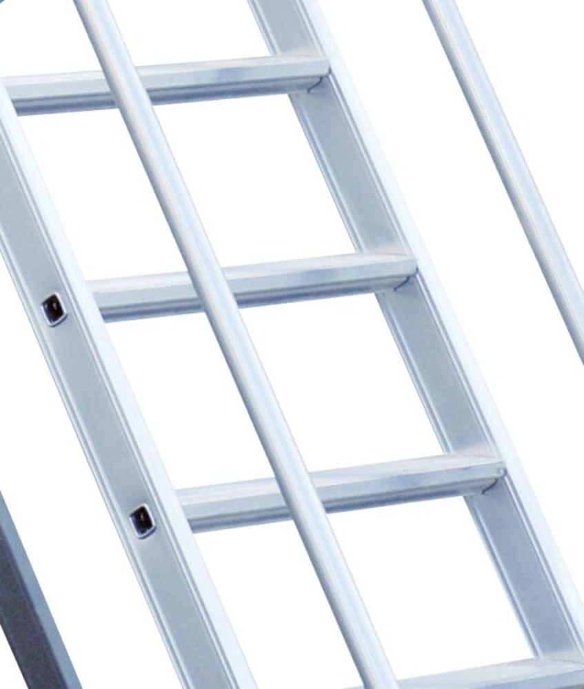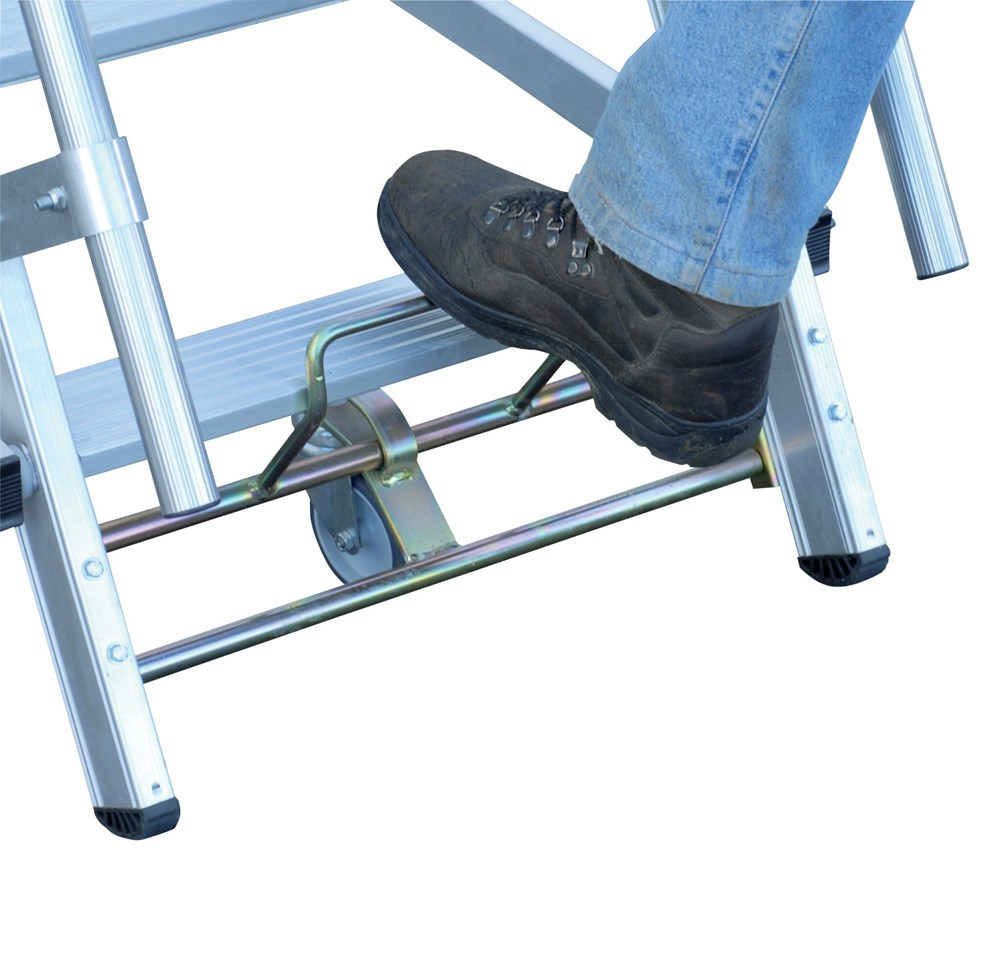 Contacteer onsStevige en veilige bordestrap dankzij het automatische hefboomrem systeem en de opvallend gekleurde stabilisatoren. Het bordes van 480 x 600 mm heeft een aluminium schoprand en leuning rondom. Het toegangshekje valt automatisch dicht om te voorkomen dat u achterover valt na het het betreden van het platform. De trap is voorzien van 10 cm diepe treden en leuningen over de gehele lengte van de trap voor een veilige opgang.
