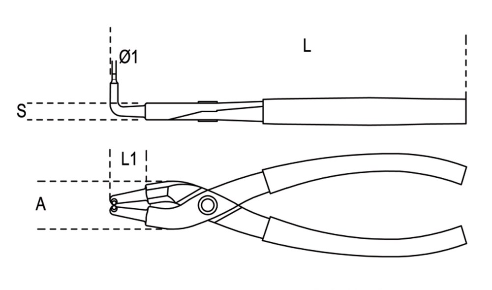 Contacteer onsBorgveertang met inwendig 90° gebogen punten voorzien van PVC handgreep.
