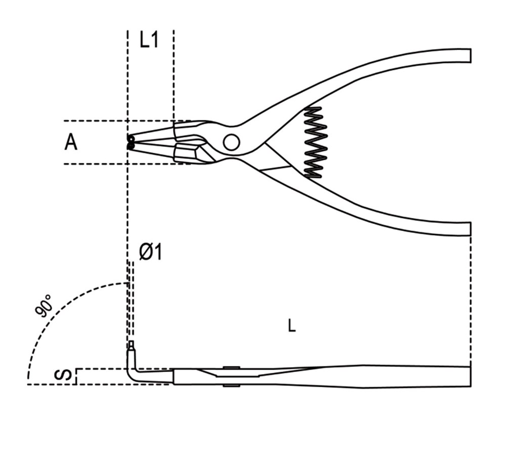 Contacteer onsBorgveertang met uitwendig 90° gebogen punten voorzien van PVC handgreep.