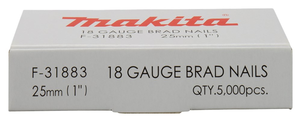 Contacteer onsMakita Artikelnummer: F-31883 DOOS BRADS. 1.2 MM. 18GA. 25 MM. 5000 STUKS