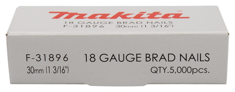 Contacteer onsMakita Artikelnummer: F-31896 DOOS BRADS. 1.2 MM. 18GA. 30 MM. 5000 STUKS
