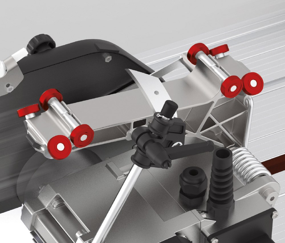 De motorgroepwagen glijdt met 8 kogellagers over verwisselbare roestvrijstalen rails.