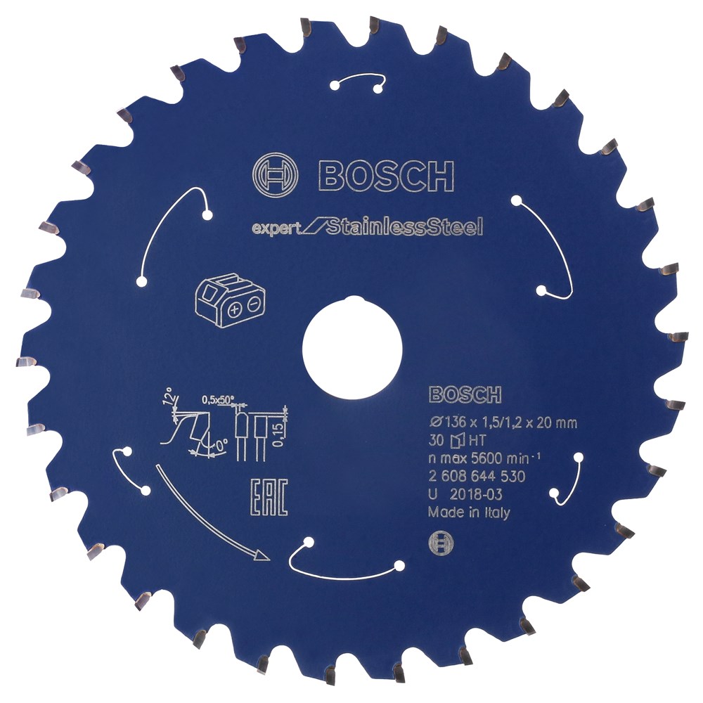 Contacteer onsBosch Artikelnummer: 2608644530 BLAD EXP. INOX 136X20X1.5/1.2X30T ACCU