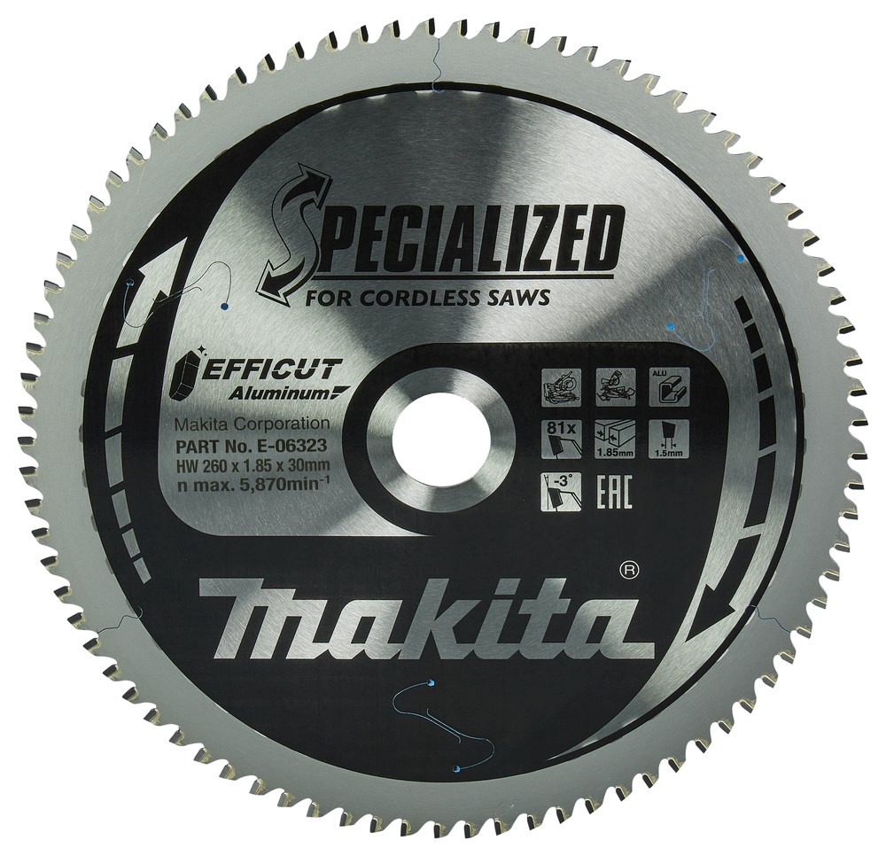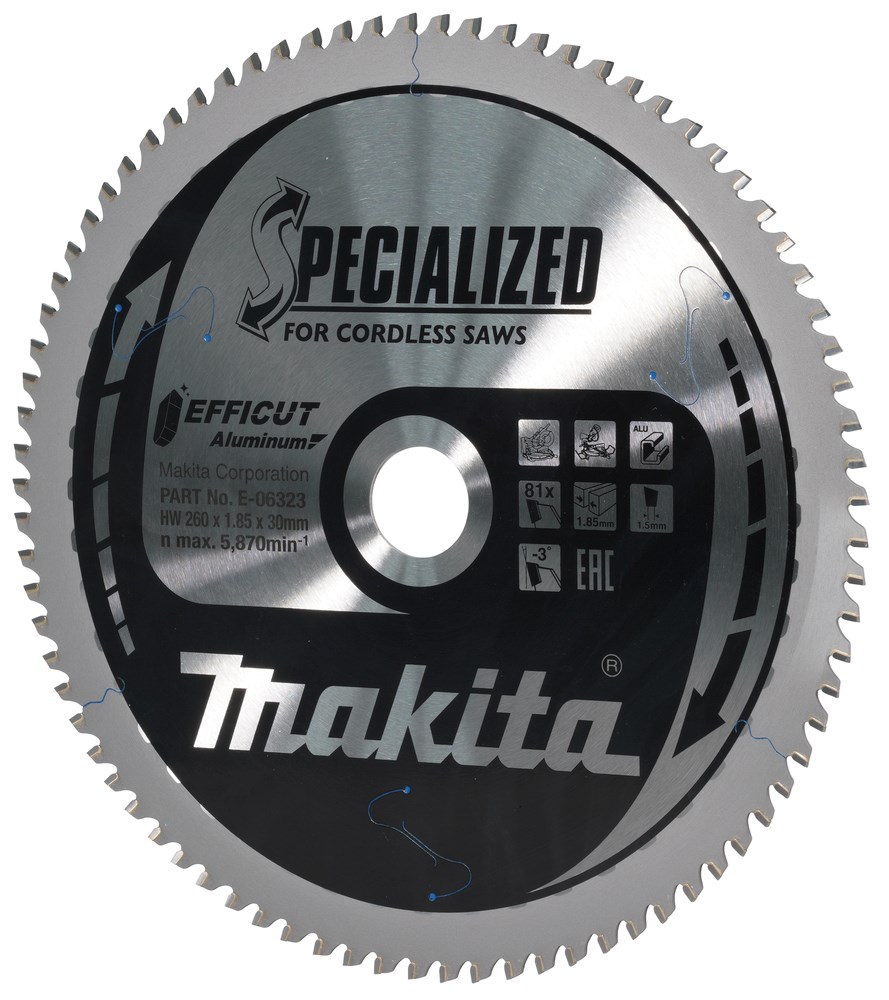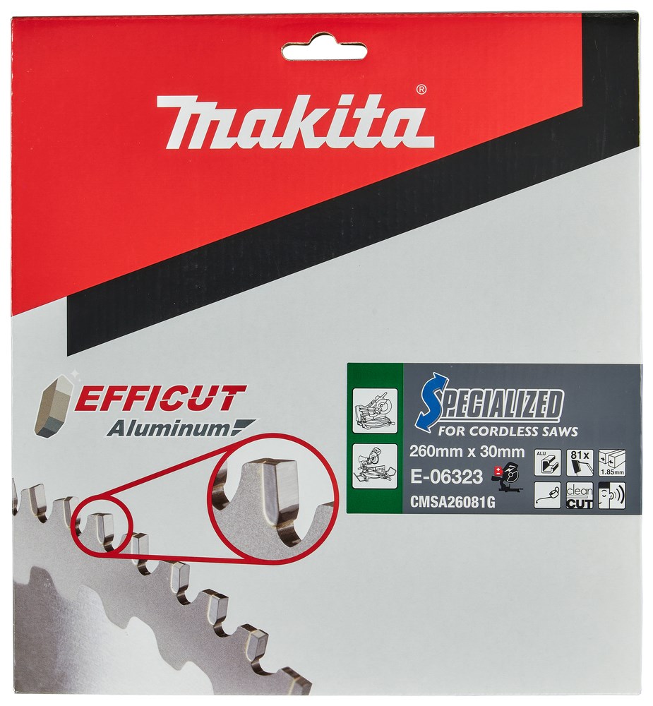 Contacteer onsMakita Artikelnummer: E-06323 CIRKELZAAGBLAD. EFFICUT TCT. 260 X 30 MM. 81 T