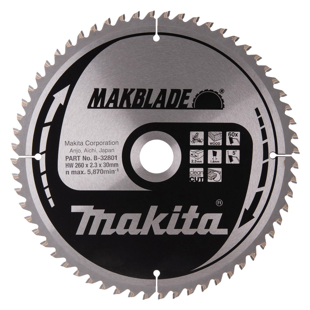 Contacteer onsMakita Artikelnummer: B-32801 CIRKELZAAGBLAD. MAKBLADE TCT. 260 X 30 MM. 60 T