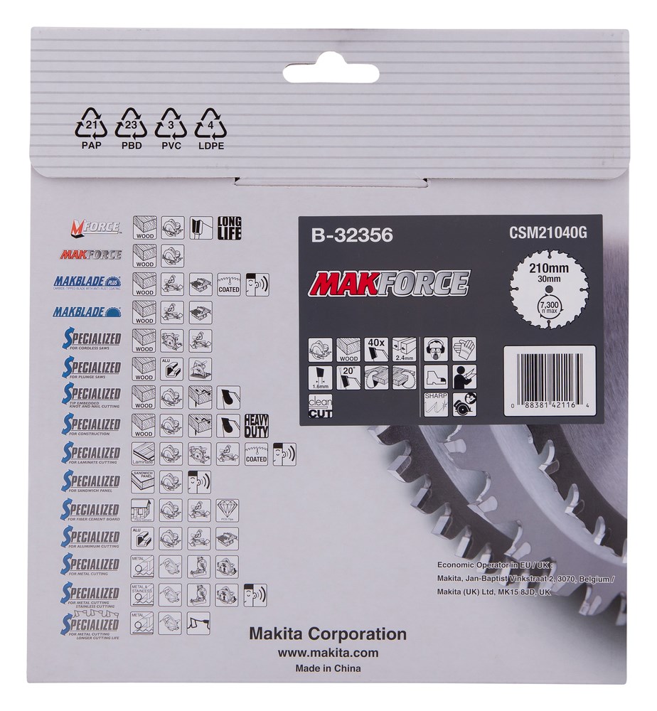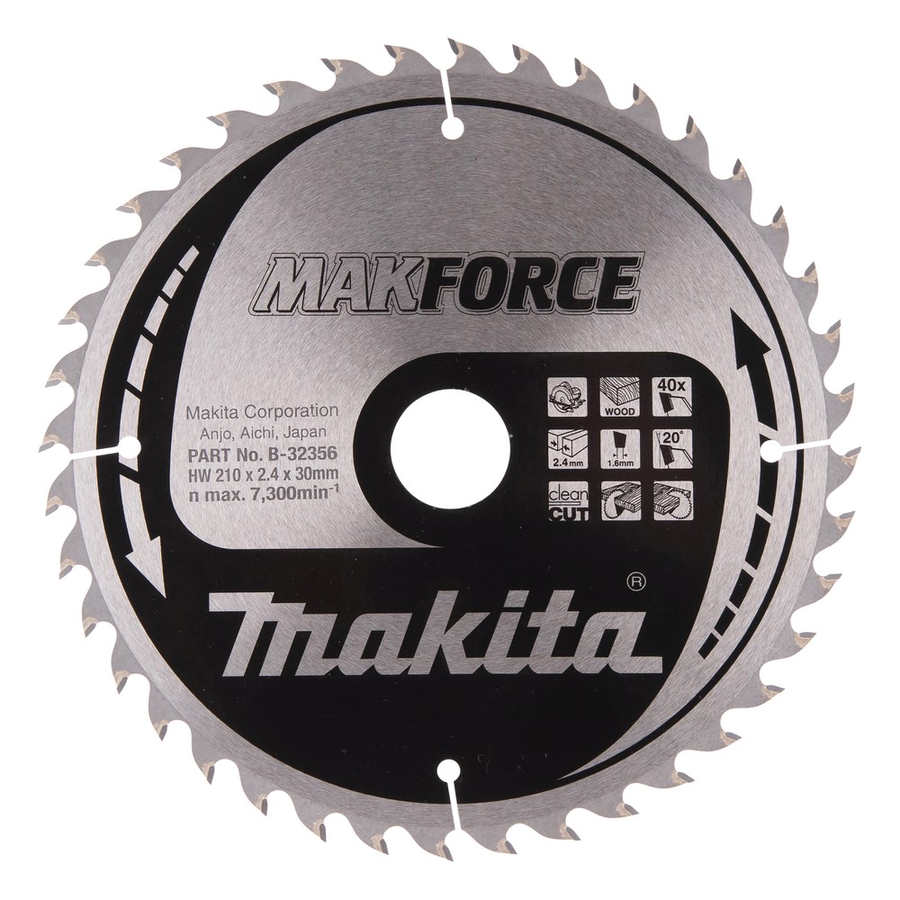 Contacteer onsMakita Artikelnummer: B-32356 CIRKELZAAGBLAD. MAKFORCE TCT. 210 X 30 MM. 40 T