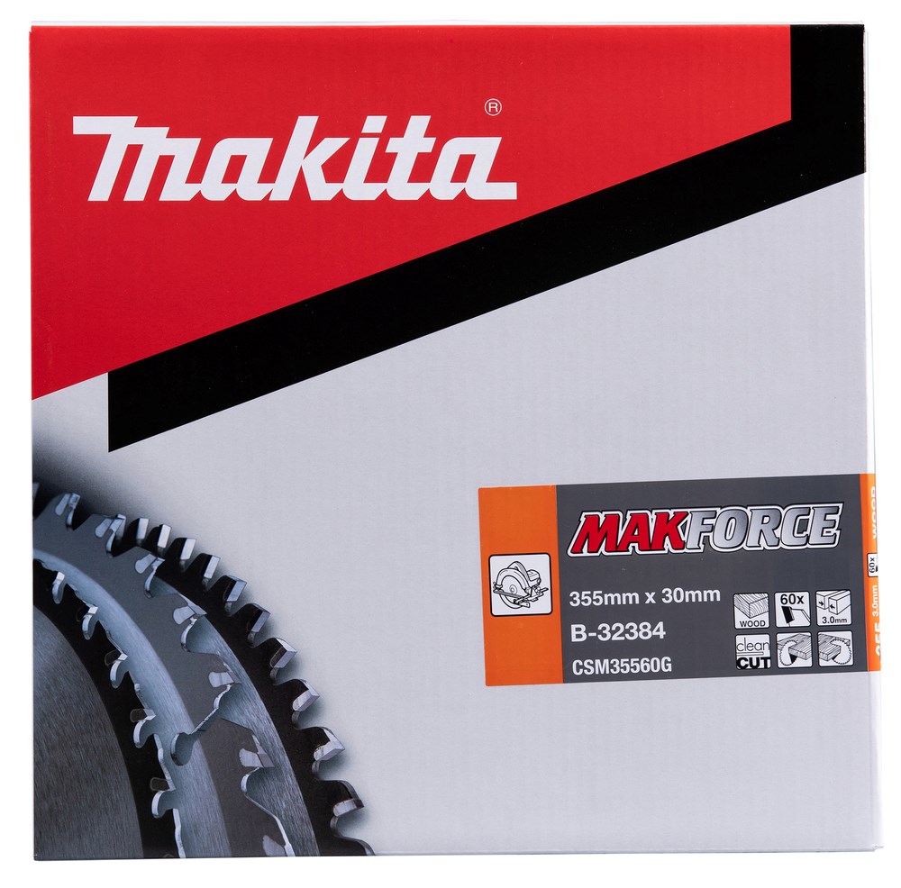 Contacteer onsMakita Artikelnummer: B-32384 CIRKELZAAGBLAD. MAKFORCE TCT. 355 X 30 MM. 60 T