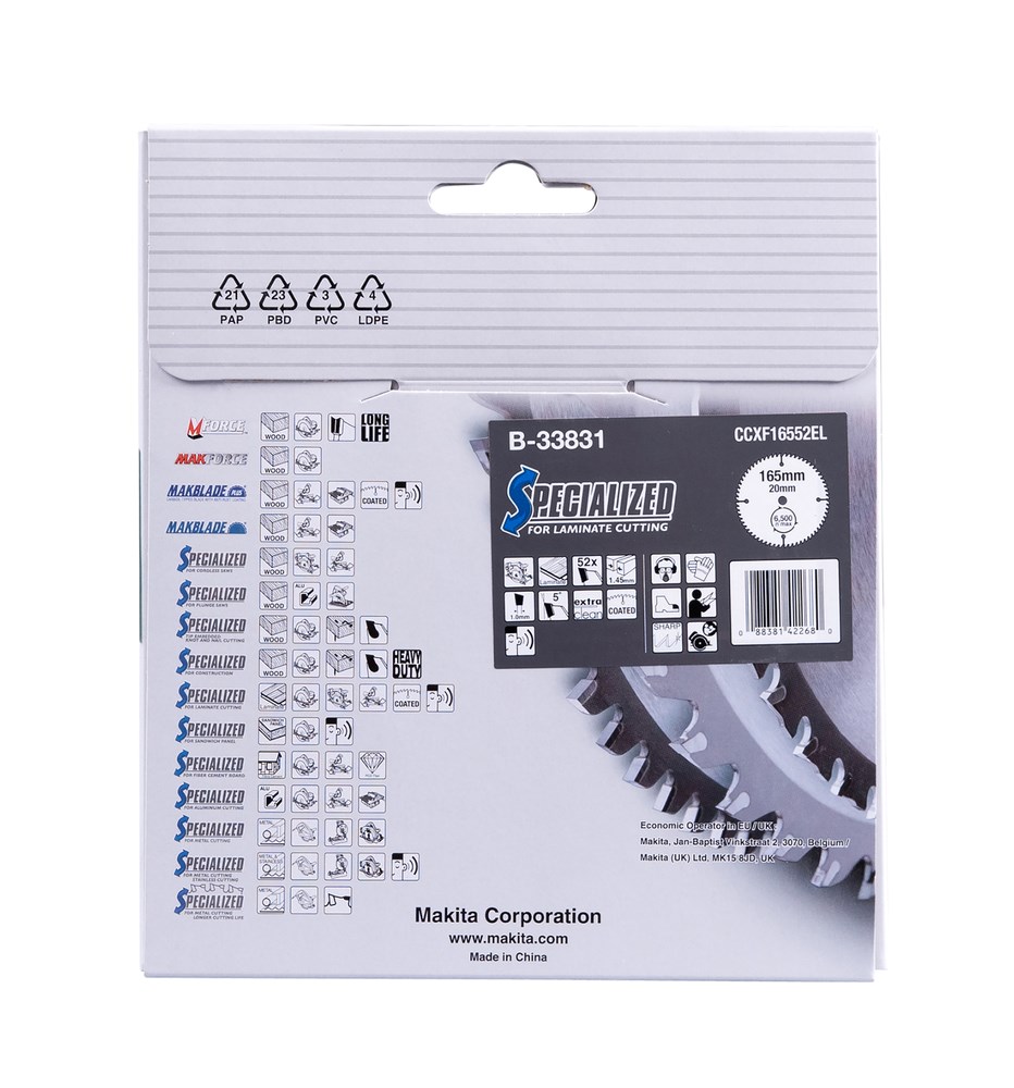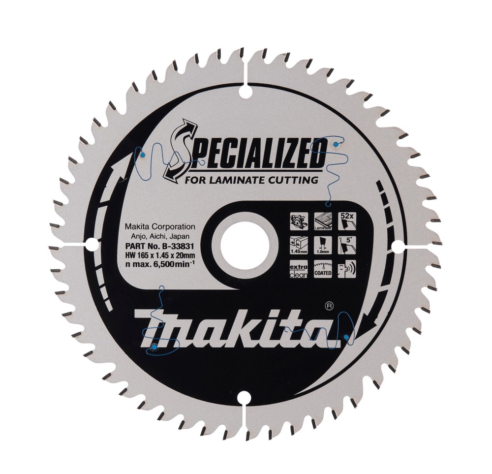 Contacteer onsMakita Artikelnummer: B-33831 CIRKELZAAGBLAD. SPECIALIZED TCT. 165 X 20 MM. 52 T