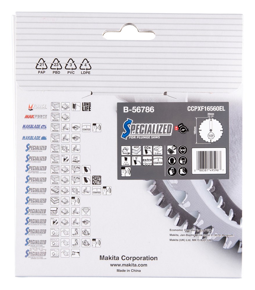 Contacteer onsMakita Artikelnummer: B-56786 CIRKELZAAGBLAD. SPECIALIZED TCT. 165 X 20 MM. 60 T