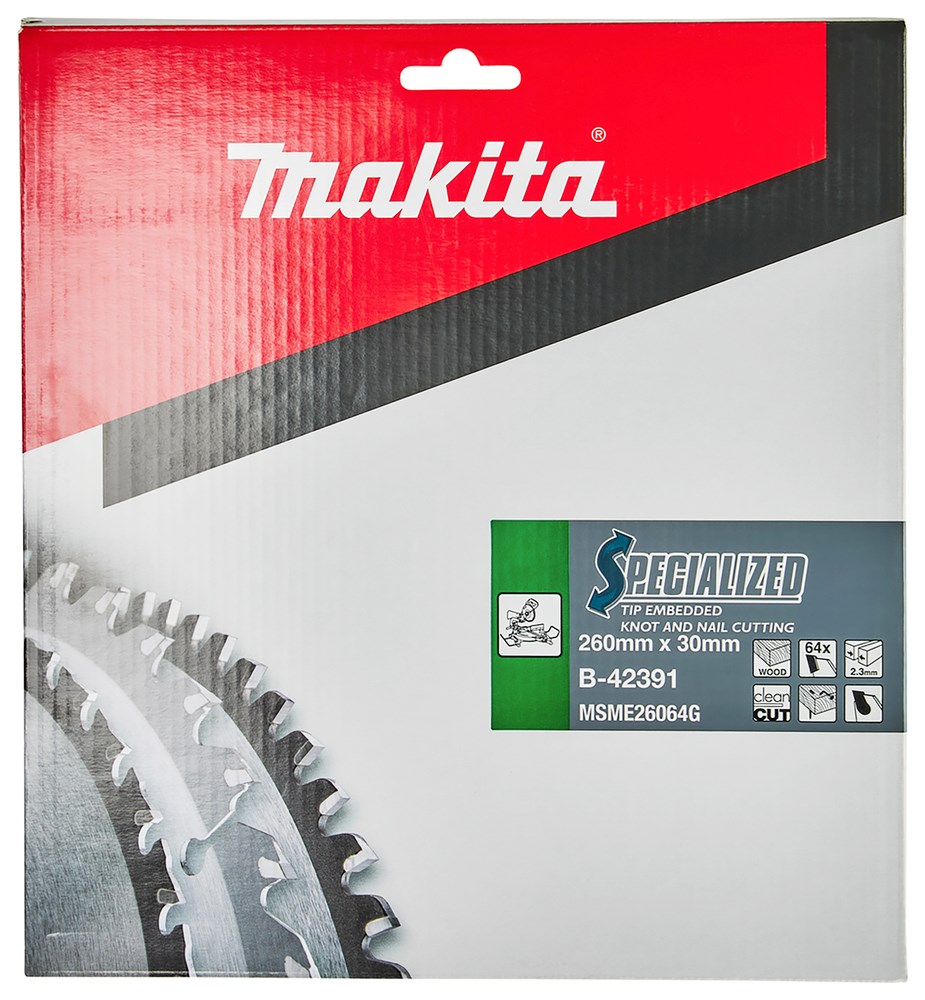 Contacteer onsMakita Artikelnummer: B-42391 CIRKELZAAGBLAD. SPECIALIZED TCT. 260 X 30 MM. 64 T