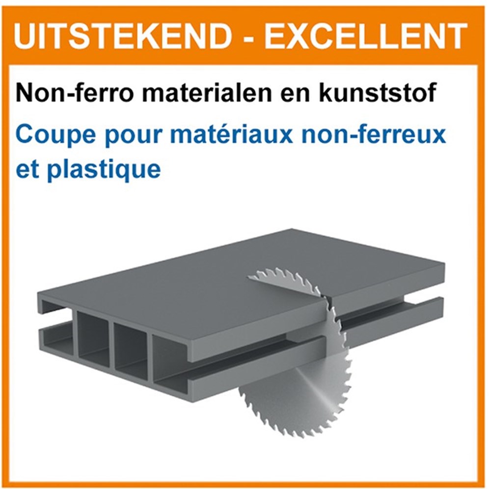 Tip: klem het materiaal goed en gebruik bij het zagen van aluminium non-ferromaterialen een vloeibaar koelmiddel.