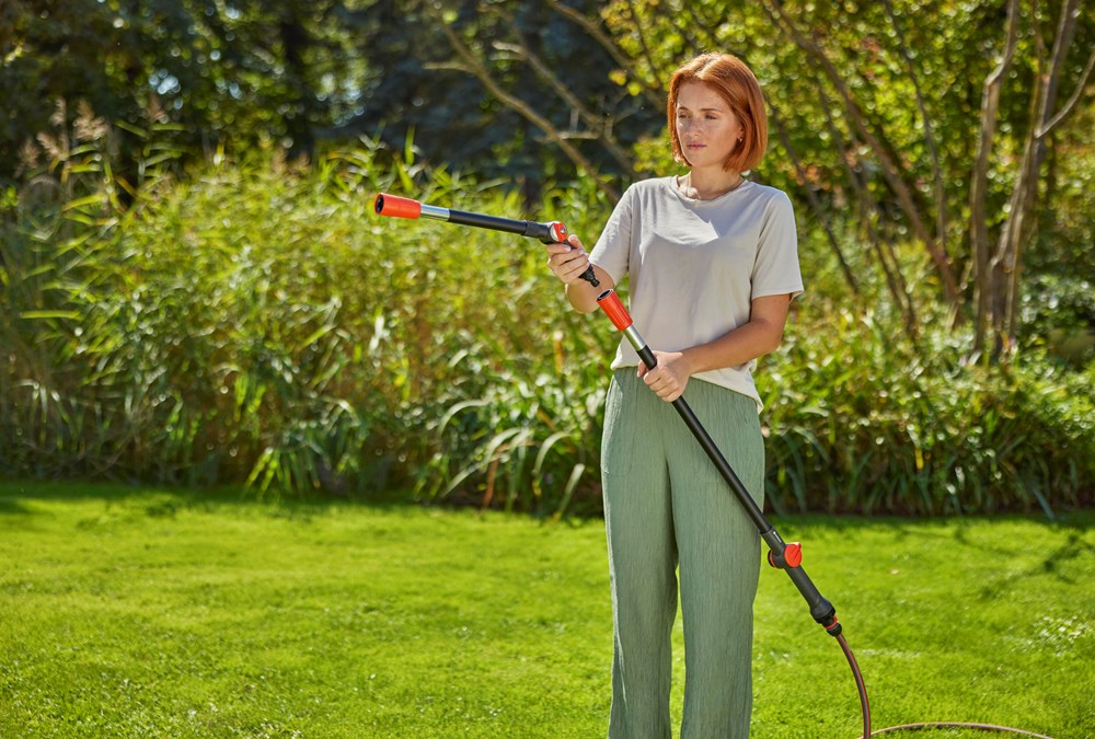 Contacteer onsDe GARDENA Cleansystem steel Flex is ideaal voor een natte reiniging van ontoegankelijke plekken, bijvoorbeeld bij terrasoverkappingen. De watervoerende steel maakt schoonmaken van moeilijk bereikbare plekken gemakkelijk Voor een gemakkelijke reiniging van moeilijk bereikbare plekken, zoals een terrasoverkapping, pergola of kas is er de watervoerende Flex steel. Hij is een verlengstuk voor een Cleansystem-steel die je rechtstreeks via de GARDENA systeemkoppeling op de tuinslang aansluit. Het water stroomt door de steel naar de borstel waar het nodig is. Zo maak je doeltreffend schoon, zonder water uit een emmer te hoeven gebruiken. Meer bereik bij het schoonmaken De GARDENA steel Flex vergroot het werkbereik met 53 cm voor een gemakkelijke reiniging van hogere horizontale vlakken, zoals terrasoverkappingen of daken van carports zonder ladder. De steel van hoogwaardig en stevig aluminium heeft een aangename ommanteling. Naar weerszijden 45° draaibare steel Met de draaibare steel kun je hoger gelegen vlakken schoonmaken, bijvoorbeeld het dak van de serre of caravan. De steel Flex klik je als verlengstuk samen met andere Cleansystem stelen eenvoudig op de tuinslang. Combineerbaar met de Cleansystem borstels en steelborstels De steel Flex is een uitbreiding van de GARDENA Cleansystem stelen (18800, 18802, 18804). De Cleansystem steelborstels (18808, 18812, 18810, 18814, 18816) passen en je kunt ze zonder problemen op de steel schroeven. Betrouwbare kwaliteit Dit kwaliteitsproduct is Made in Germany. GARDENA biedt 5 jaar garantie op dit product na registratie op gardena.com/registration, binnen 3 maanden na aankoop. Kijk op gardena.com/warranty voor de garantievoorwaarden.