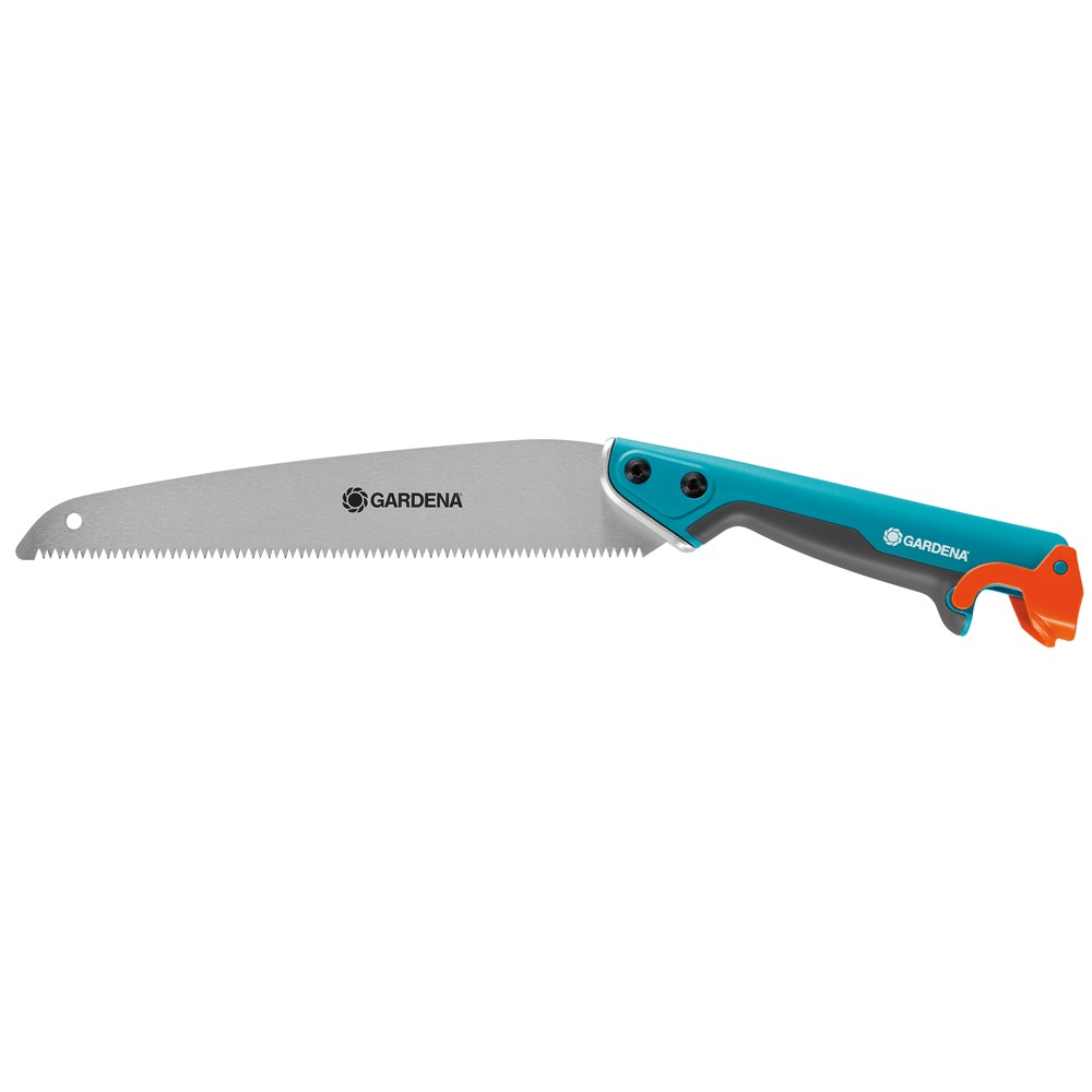 Contacteer onsDe combisystem Tuinzaag 300 PP van GARDENA helpt bij zaagwerkzaamheden met een bruikbare zaaglengte van 300 mm. De push-pull zaag levert tijdbesparende snelle spaanafvoer in beide richtingen. Het hardverchroomde zaagblad is beschermd tegen corrosie en heeft een lange levensduur. Dankzij de impulsgeharde vertanding blijft het zaagblad lang scherp. De ergonomische handgreep zorgt voor een comfortabele en veilige bediening met behulp van de softgrip. De slipstop aan het einde van de handgreep zorgt voor een stevige grip. De tuinzaag maakt deel uit van het GARDENA combisystem, waardoor veelzijdig gebruik mogelijk is als handzaag of in combinatie met een combisystem-steel zoals de Telescoopsteel, die apart verkrijgbaar is. Deze betrouwbare verbinding wiebelt niet. Dit betekent dat hogere takken effectief kunnen worden gezaagd. De bladkap zorgt voor veilig opbergen en dankzij de ophangbeugel is de combisystem-tuinzaag 300 PP altijd bij de hand. GARDENA ondersteunt het made-in-Germany kwaliteitsproduct met 25 jaar fabrieksgarantie.