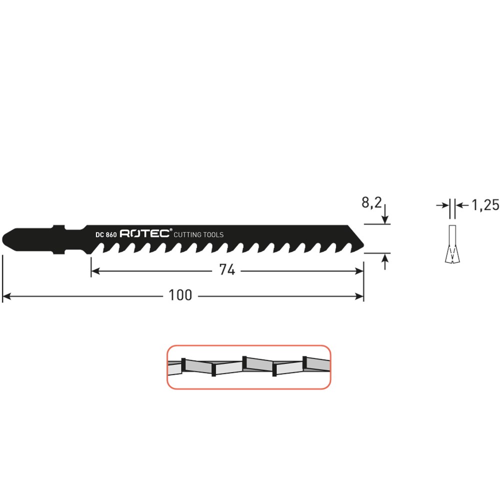 Stamblad voorzien van hardmetalen tanden, gezet.