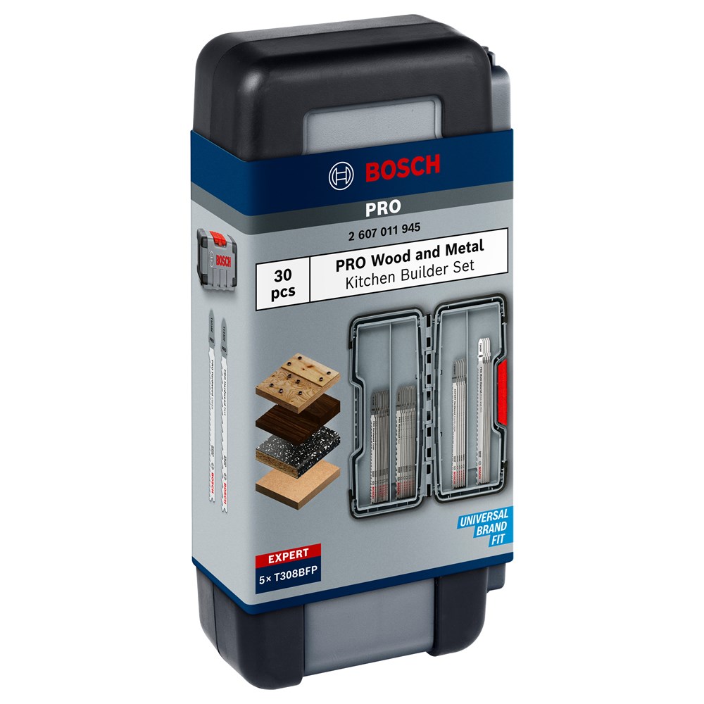 Keukeninstallateurs moeten vaak verschillende soorten materialen zagen en ervoor zorgen dat alle sneden schoon en nauwkeurig zijn. Daarom hebben we de PRO Wood and Metal Kitchen Fitter Set ontwikkeld. De set bevat decoupeerzaagbladen die lang meegaan en die je kunt gebruiken voor snelle, nauwkeurige en zuivere zaagsneden in hardhout en schurende houtbewerkingsmaterialen, maar ook voor snelle zaagsneden in metaal.