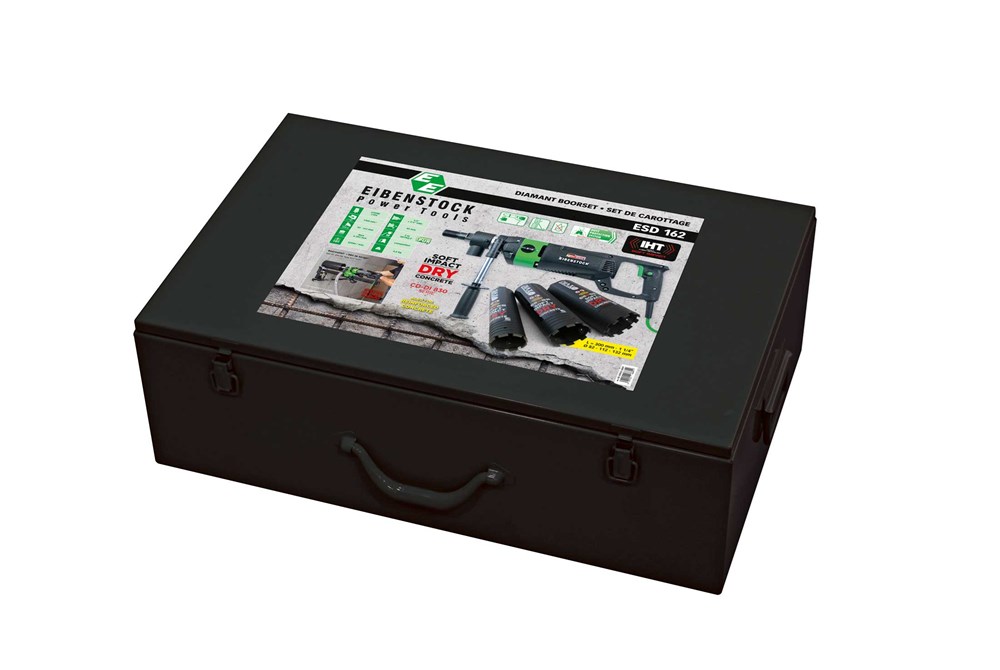 Contacteer onsEIBENSTOCK Artikelnummer: PPEE 03SI25-BOX DIAMANTBOORMACHINE SET - ESD 162 + 3 BOORKRONEN - SOFT-IMPACT