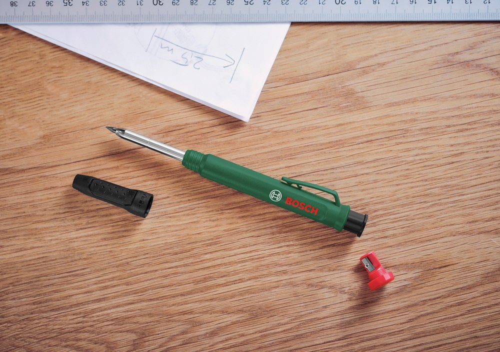Voor precieze uitlijn- en montageklussen is het robuuste Bosch diepgatmarkeerpotlood een belangrijk hulpmiddel. Met de hoogwaardige kern van grafietlood en afneembare dop is dit ideaal voor het markeren van meerdere materialen, platte oppervlakken en bereiken van diepe gaten.