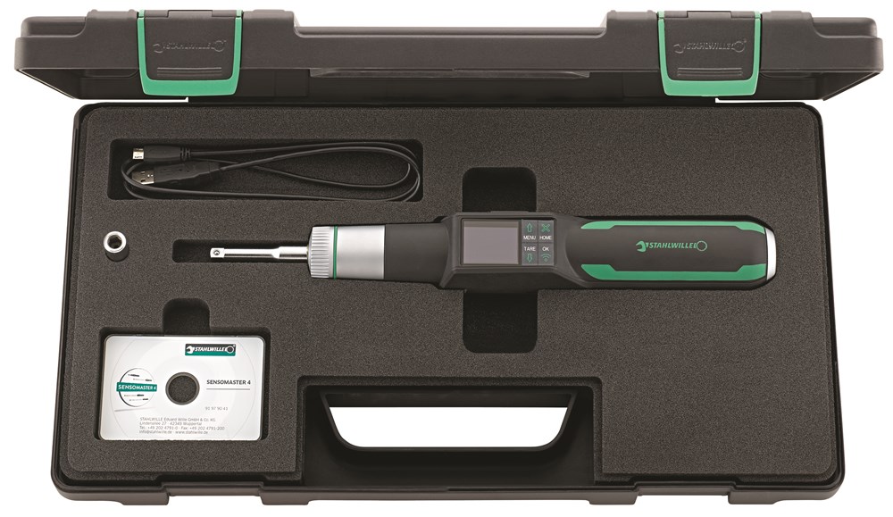 Contacteer onsElektromechanische momentschroevendraaiers, aanwijzend en klikkend, geïntegreerde bitratel met 80 tanden voor een werkhoek van slechts 4,5° en dus voor zeer fijn werk, ideaal voor moeilijk bereikbare verbindingen, na de klik voorkomt het doorslipmechanisme het onbedoeld overschrijden van het ingestelde aanhaalmoment en het overtrekken van de bout, duidelijke weergave van alle relevante informatie op een helder en batterijvriendelijk OLED-kleurenscherm – leesbaar vanuit vrijwel elke hoek, optische evaluatie van het boutverbinding door verkeerslichtkleuren in het display en LEDs aan de zijkant, menu in verschillende talen, lange levensduur van de batterij met batterijvriendelijke stand-by modus. De batterijen zijn snel en gemakkelijk te vervangen, slaat tot 2.500 boutverbindingen en sequenties op voor later uitlezen en documenteren op de pc met behulp van een geïntegreerde micro-USB-interface, instelmoment en toleranties voor de evaluatie van de gemeten waarde kunnen individueel worden ingesteld, - korte inwerktijd dankzij bijna vanzelfsprekende bediening en een gemakkelijk te begrijpen menustructuur, drie bedrijfsmodi (klik, track, peak hold), optisch, akoestisch en haptisch stopsignaal, de ergonomisch geoptimaliseerde balgreep maakt moeiteloos werken mogelijk en is bestand tegen oliën, vetten, brandstoffen, remvloeistoffen en skydrol, voor links- en rechtsomgebruik, met 1/4"-buitenvierkant (6,3 DIN 3120/ISO 1174-1) voor 1/4" doppen, met 1/4" binnenvierkant in het uiteinde van de greep (6,3 DIN 3120/ISO 1174-1) voor het monteren van een 1/4" T-greep, meeteenheden: cNm, Nm, ft-lb, in-lb, in-oz, inbegrepen bij aflevering: software SENSOMASTER 4, USB-kabel, bithouder, T-greep (gr. 10), geleverd met lithiumbatterij 3.6 V, type 18650, verpakt volgens UN 3480, gepatenteerd, certificaat volgens DIN EN ISO 6789-2:2017, in een stevige kunststoffen doos, weergave-afwijking ± 4%.