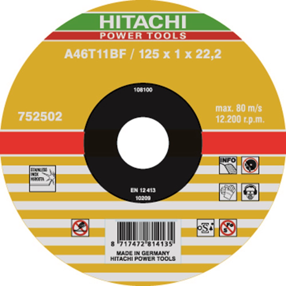 Contacteer onsHiKOKI Artikelnummer: HO752502 DOORSLIJPSCHIJF 125X1MM VOOR INOX