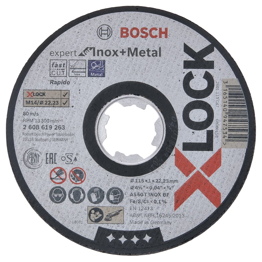 Contacteer onsBosch Artikelnummer: 2608619263 SCHIJF PRO X-LOCK INOX 115X1X22.23MM
