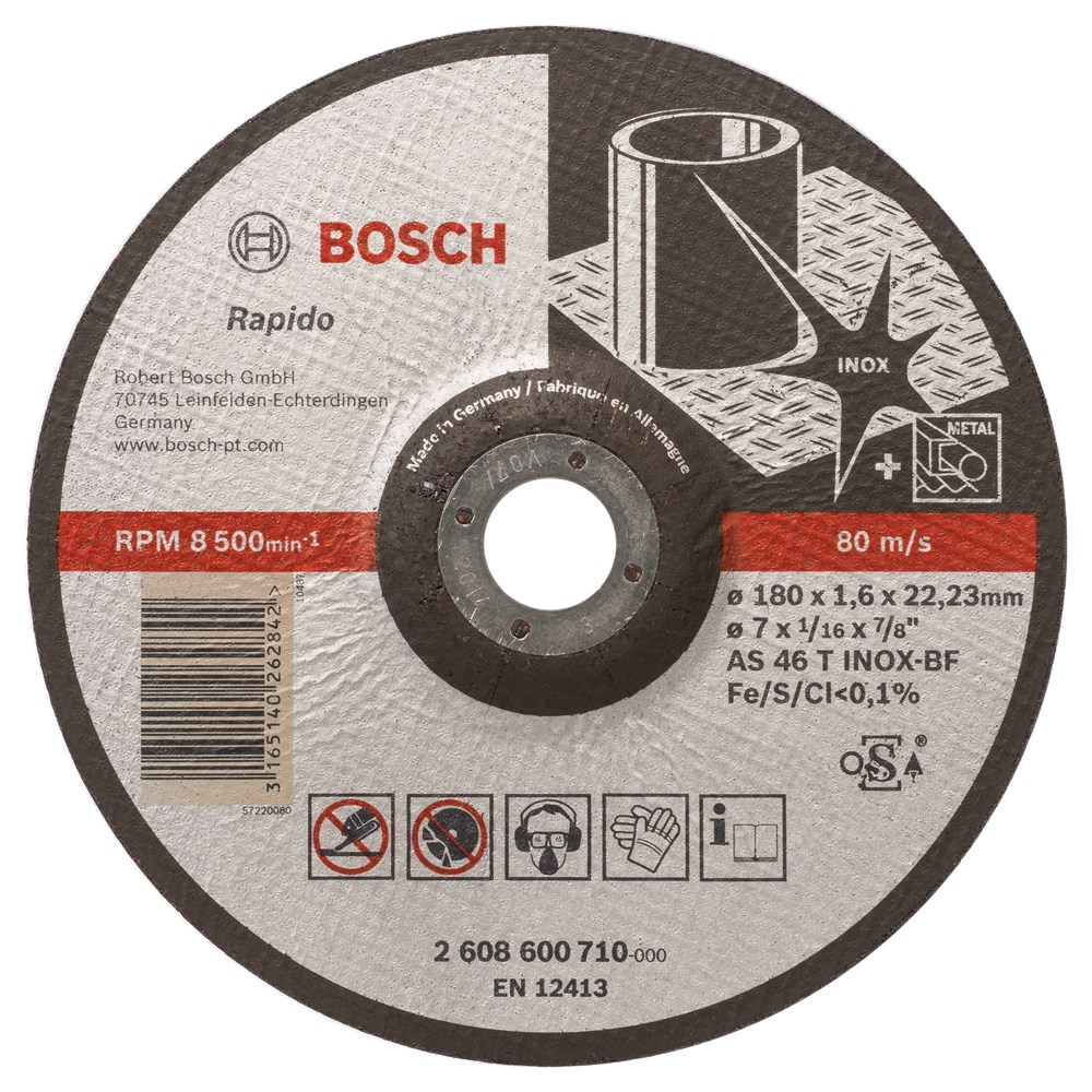 Contacteer onsBosch Artikelnummer: 2608600710 SCHIJF PRO METAL INOX 180X1.6X22.23MM