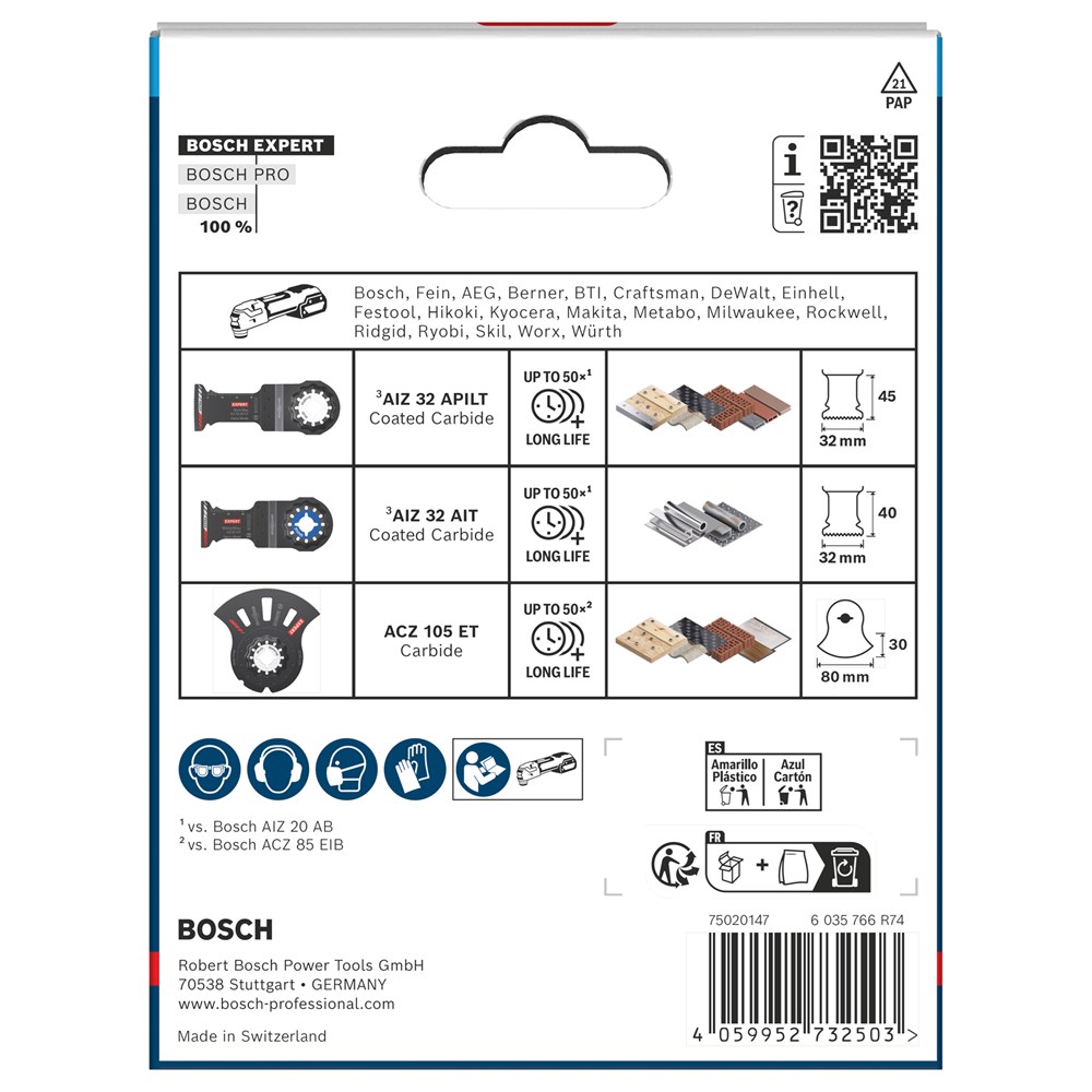 De EXPERT-doorslijpset bevat uitzonderlijk duurzame oscillerende multitoolzaagbladen voor professionals die roestvrijstalen buizen en profielen, hout met spijkers en gipsplaatmaterialen door moeten slijpen of invalzagen.