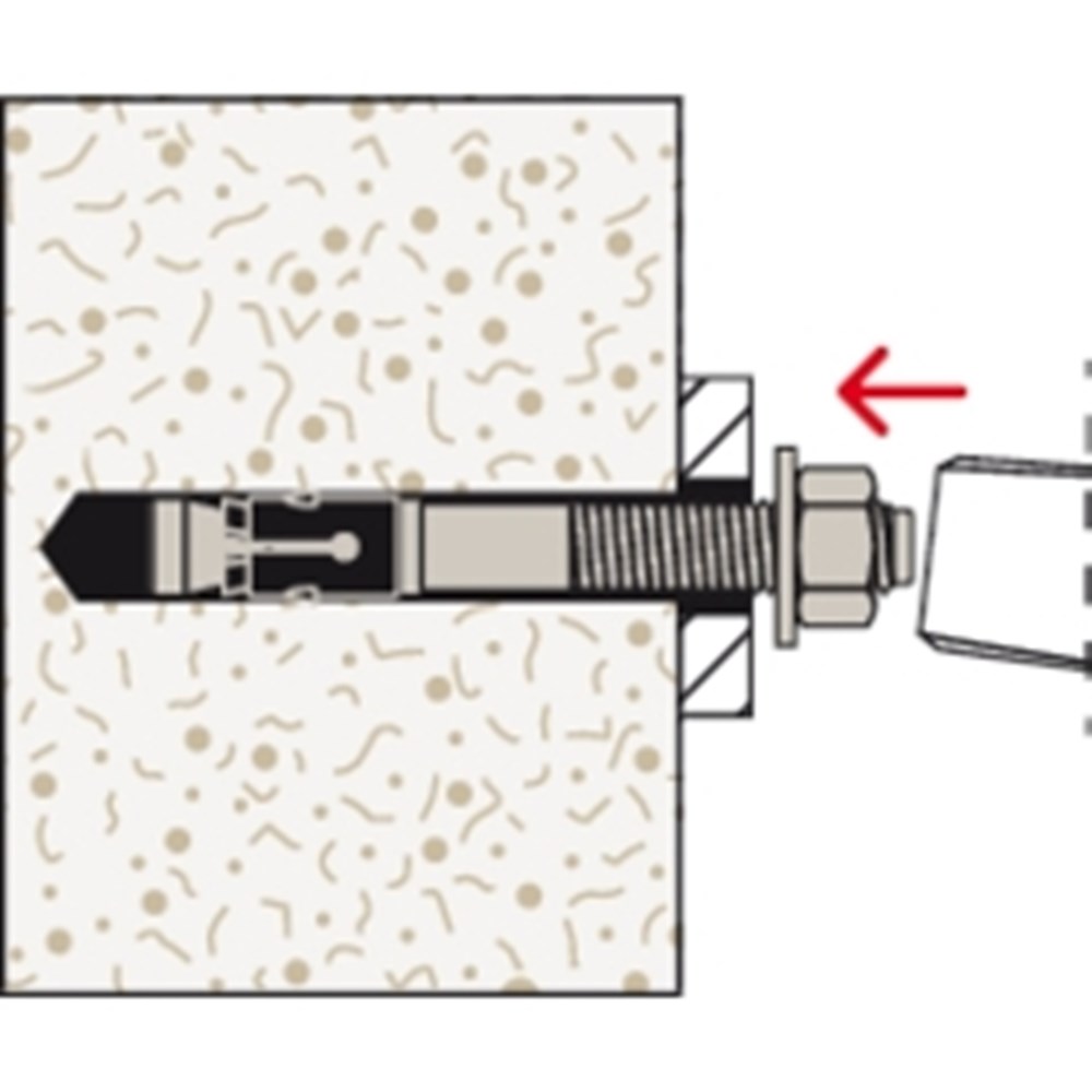 Contacteer onsVoor de bevestiging van zware voorwerpen in beton wordt aanbevolen om het fischer Doorsteekanker FAZ II te gebruiken. Met behulp van de beproefde spreidclip voldoet de metalen plug aan de allerzwaarste eisen. De spreidclip spant zich tijdens het aandraaien van de moer tegen de wand van het boorgat en garandeert daarmee sterke bevestiging. De stalen plug kan eenvoudig worden gemonteerd. Met een hamer inslaan in dan met behulp van een momentsleutel vastdraaien – klaar. De ankerbout van gegalvaniseerd staal kan enorm veelzijdig worden gebruikt, omdat hiermee zowel veel verschillende voorwerpen in het interieur als TV-consoles, trapleuningen of kabeltracés kunnen worden bevestigd.