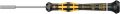 Elektrostatisch veilige Micro-schroevendraaier. Goed beveiligd tegen elektrostatische energie en daaruit voortvloeiende schade. Door afsteunen van de hand op de draaikap en de sneldraaizone onder de draaikap is razendsnel heen-en-weer draaien mogelijk. Tijdrovend ompakken behoort tot het verleden. Krachtzone met geïntegreerde zachte delen zorgt voor overdracht van hoge losdraai- en aanhaalmomenten. Precisiezone voor de juiste draaihoek bij afstelwerkzaamheden. "Take it easy tool finder": met kleurcodering op profiel en maatcode – voor het eenvoudig en snel vinden van het benodigde gereedschap.
