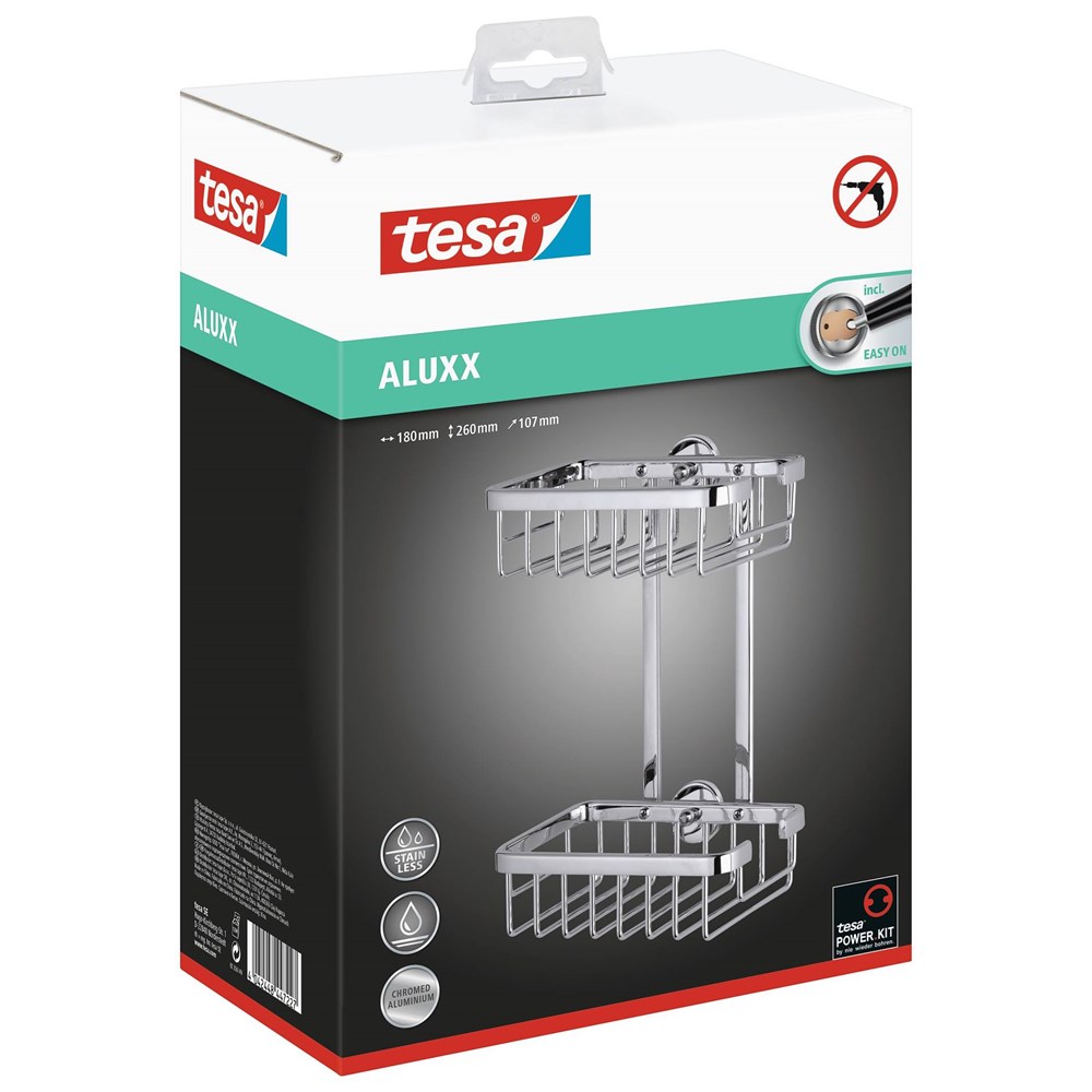 Contacteer onsHet tesa® Aluxx doucherek dubbel biedt voldoende ruimte voor al je toiletartikelen. Dit dubbele rek is tijdloos en elegant en zal je badkamer zeker verfraaien. Boren is niet nodig omdat er een zelfklevende oplossing gebruikt wordt voor de montage. Muren en tegels worden niet beschadigd en je kunt het rek op elke gewenste plek ophangen. De lijm heeft 12 uur nodig om uit te harden, waarna het muurvast is bevestigd. Toch kan het doucherek snel en zonder sporen worden verwijderd. Het kan ook gemakkelijk ergens anders worden geplaatst met adapter BK43-2. tesa.Power.Kit Glue: Let op! Bij gebruik kunnen gevaarlijke inhaleerbare stofdeeltjes worden gevormd. Stof niet inademen.