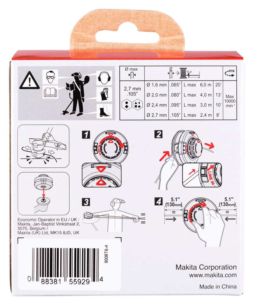 Contacteer onsMakita Artikelnummer: 191D91-7 DRAADKOP 2.0 MM. M8 X 1.25 LH