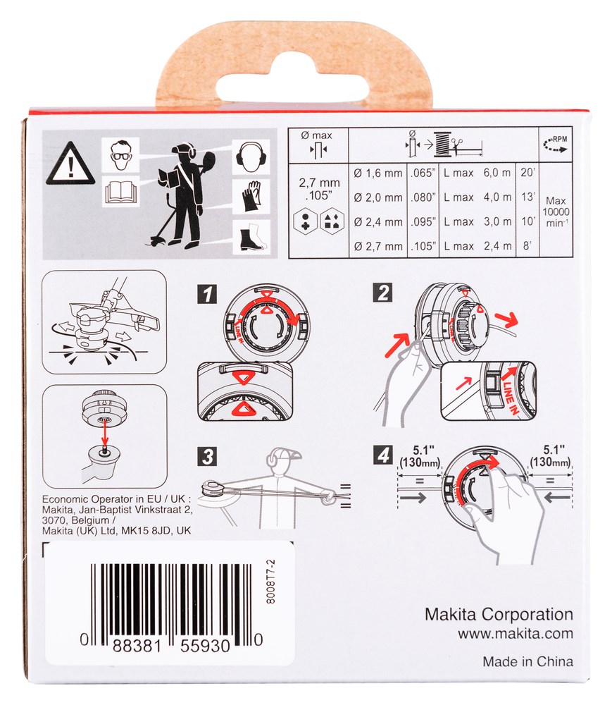 Contacteer onsMakita Artikelnummer: 191D92-5 DRAADKOP 2.0 MM. M8 X 1.25 RH