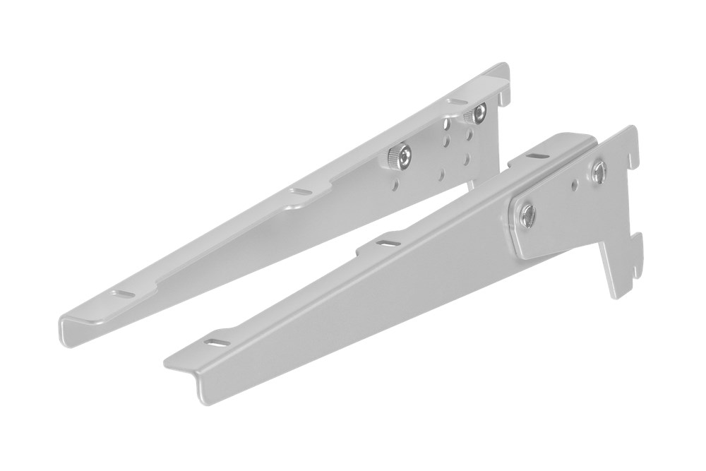 Het grote voordeel van een wandrailsysteem is dat deze modulair en flexibel in te richten is, waardoor je hem volledig aanpast naar jouw wensen en ruimte. Dankzij deze verstelbare dragers combineer je rechte met gekantelde legplanken. En kom je erachter dat de plank 10 cm hoger op een hoek van 30° toch beter zou passen? Geen probleem! De verstelbaarheid is zo vaak als nodig eenvoudig aan te passen. En zonder te boren plaats je hem in één van de andere slotgaten die om de 5 cm in de rail zitten.
