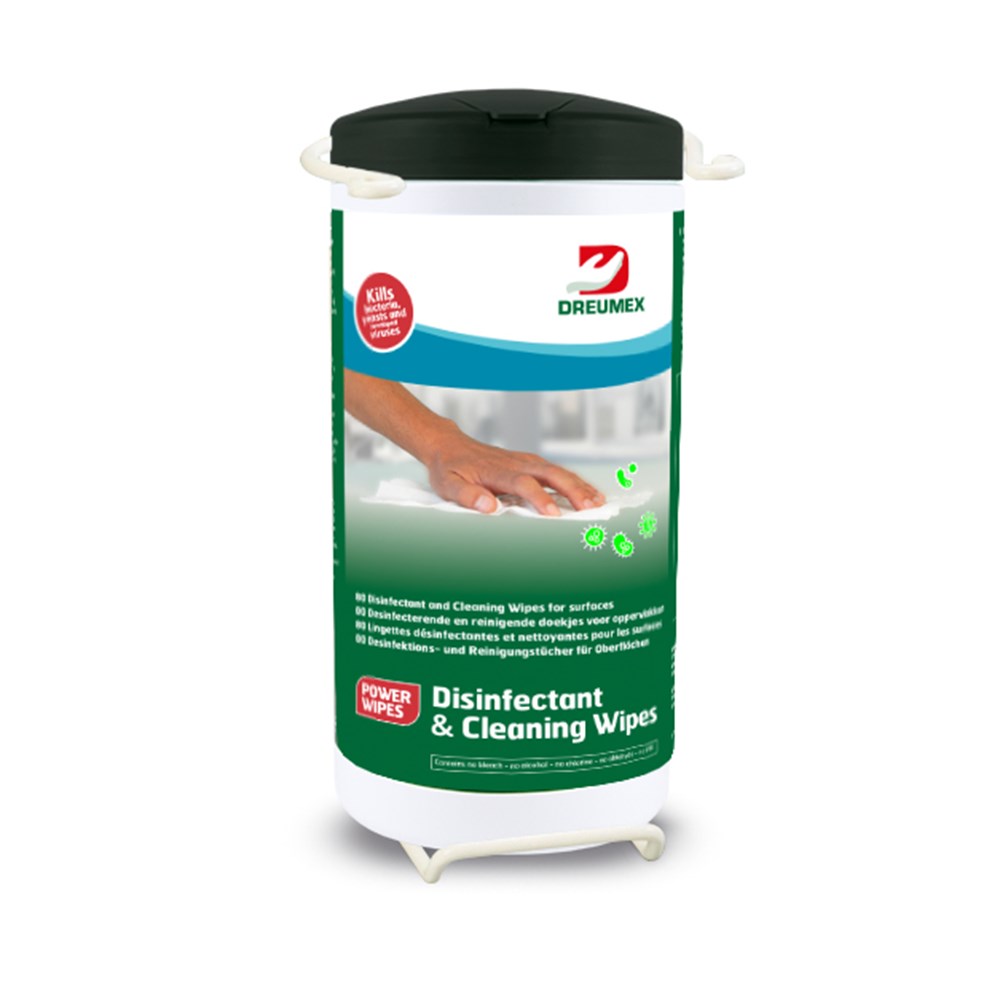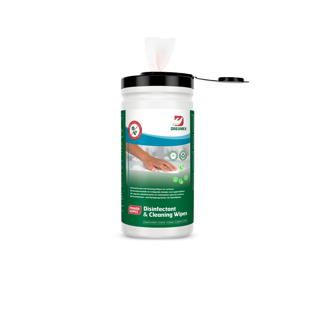 Contacteer onsDreumex Disinfectant & Cleaning wipes zijn gebruiksklare doekjes voor desinfectie en reiniging van harde oppervlakken, inclusief oppervlakken die in contact komen met voedsel en/of dranken. Doodt bacteriën, gisten en omkapselde virussen in twee minuten. Volledig veilig voor al uw apparatuur: bevat géén bleekmiddel, alcohol, chloor, aldehyde of VOC. Bovendien zijn Dreumex Disinfectant & Cleaning Wipes dermatologisch getest en goedgekeurd, waardoor ze zonder handschoenen te gebruiken zijn voor de desinfectie van oppervlakken. Speciaal ontwikkeld en aanbevolen voor gebruik in de industriële- en voedingssector, sport en gezondheid (zoals fitnesscentra, sportclubs, sporthallen, zwembaden), horeca (zoals hotels, restaurants, catering, congres- en vergaderfaciliteiten, scholen) en facilitaire diensten. Toelatingsnummer: EU-0018737-0001 PT2 en PT4 geclassificeerd