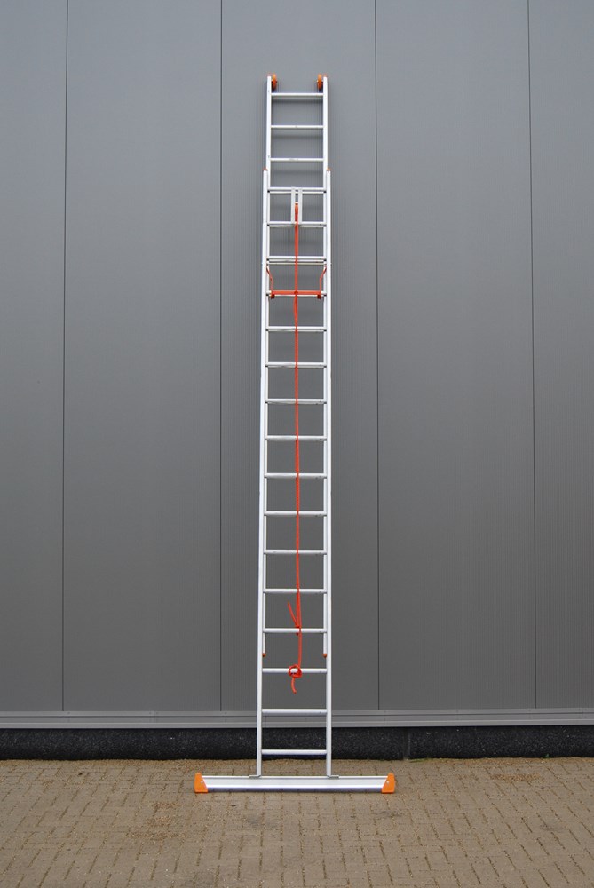 – Twee- en driedelige schuifladder met optrek koord en haak