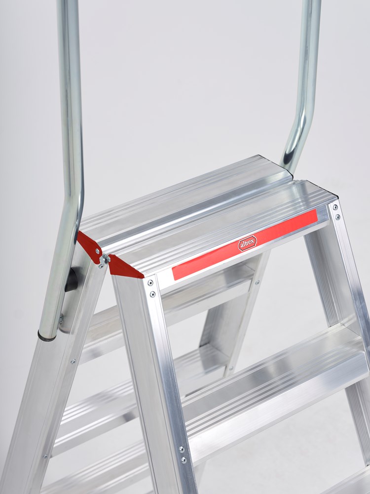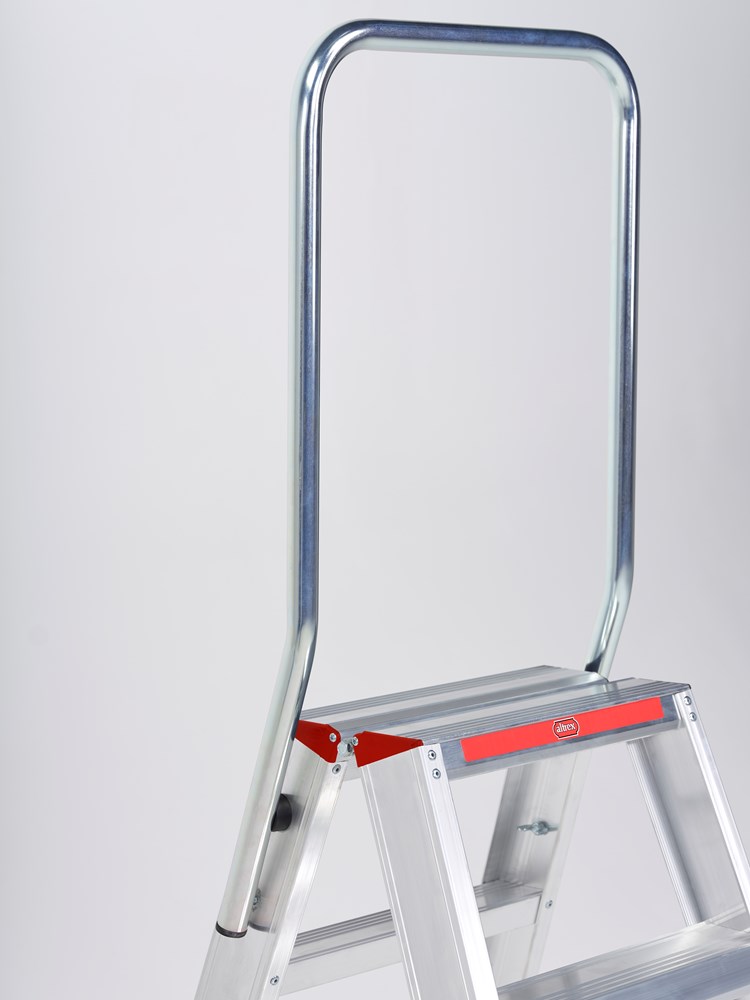 De steunbeugel geeft je extra veiligheid. De stevige trapvoeten zorgen voor de nodige stabiliteit. Bovendien zorgt het antislip profiel ervoor dat je niet wegglijdt.