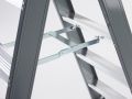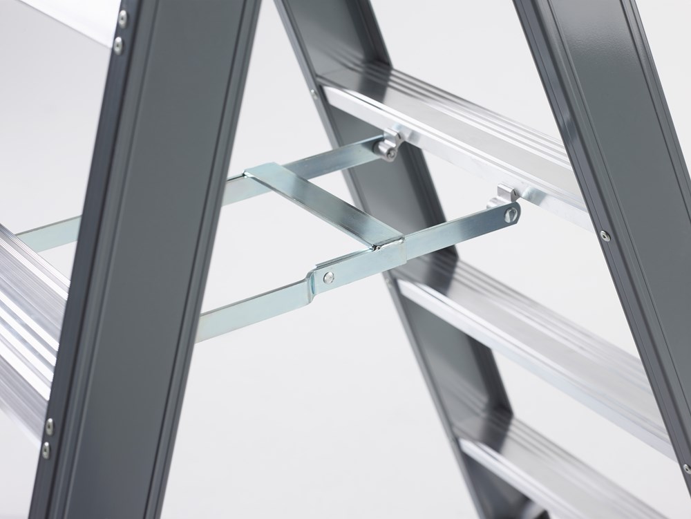 De grijze coating is niet alleen stijlvol. Het is bovendien vuilafstotend en geeft niet af aan je handen. Door de schetsschoren en grote voeten weet je zeker dat je stabiel staat. De steunbeugel geeft je extra veiligheid. Ingeklapt is de trap compact te transporteren. Door de drukvaste spreidbeveiliging (vanaf FDO 2 x 3) weet je zeker dat de trap niet ongewild inklapt. Bovendien sta je stevig en stabiel door de grote antislip-voeten. Een trap voor elke professionele klus.