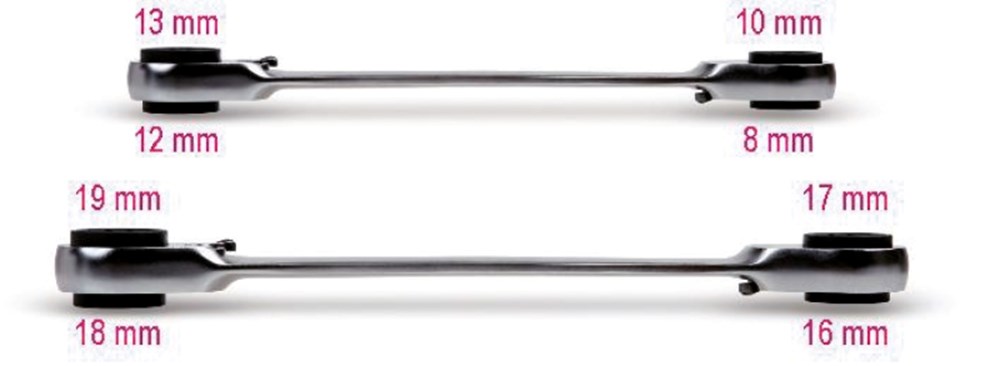 Contacteer onsOmschakelbare ringratelsleutel, dubbele twaalfkant ring, verchroomd