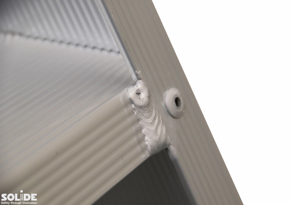 Extra beveiliging tegen spreiden en toeschuiven via 2de scharnierplatform onder het boventste platform.