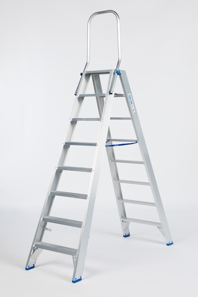 Contacteer onsSolide Artikelnummer: DT08BKL DUBBELE TRAPLADDER / 2 X 8 TREDEN. KLAPBEUGEL