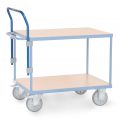Contacteer onsAanbouwset voor MultiVario tafelwagens. Opschroefbare duwbeugel van stalen buis, blauw RAL 5007 gepoedercoat. Eenvoudige zelfmontage door middel van de kunststof klemmen, ook achteraf uitrustbaar. In hoogte verstelbaar voor de optimale ergonomische greeppositie.
