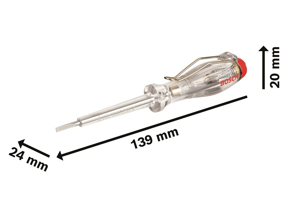 Professionals hebben gereedschappen nodig die eenvoudig in gebruik zijn en die aan alle wettelijke eisen voldoen. De Bosch Professional eenpolige fasetester is gecertificeerd conform DIN VDE 0680-6. Met dit gereedschap kan worden vastgesteld of er wel of geen spanning aanwezig is. Dit detecteert spanningen van AC 120 V tot 250 V en er is een gloeilampje geïntegreerd dat waarschuwt bij aanwezige spanning. Deze spanningszoeker heeft een geïsoleerde schacht van S2-staal. Deze is comfortabel te gebruiken door het ergonomische ontwerp en heeft een handige, stevige zakklem. Door de eenpolige fasetester aan ons Bosch Professional programma toe te voegen zijn alle gereedschappen in betrouwbare Bosch kwaliteit verkrijgbaar.