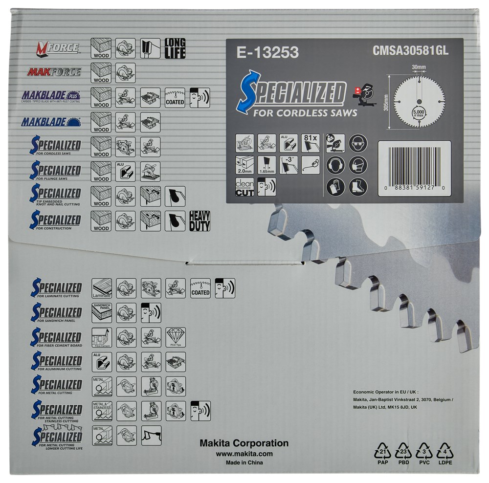 Contacteer onsMakita Artikelnummer: E-13253 CIRKELZAAGBLAD. EFFICUT TCT. 305 X 30 MM. 81 T